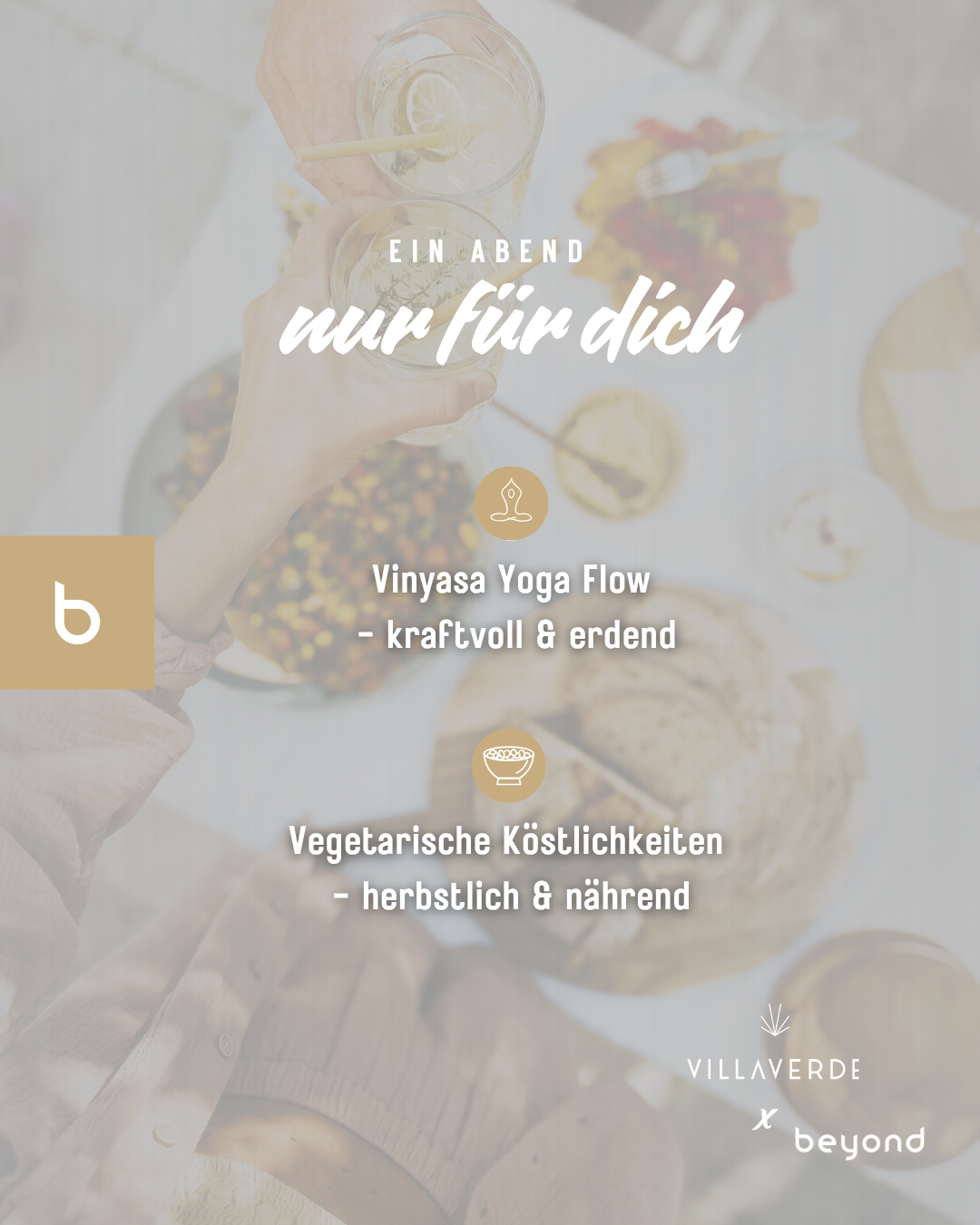 Allora unisciti a noi, quando beyond e VillaVerde ti invitano a una serata di movimento fluido, rilassamento profondo e piccoli momenti di piacere.
